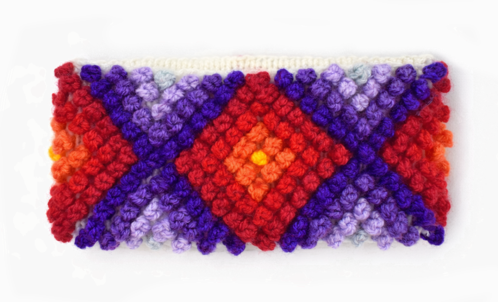 Příjemná pestrobarevná čelenka s tradičním peruánským zdobením. V galerii je pro ukázku fotografie jiné barevné varianty této čelenky na postavě.