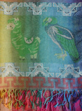 Krásný a příjemný šál v duhových barvách s peruánskými motivy…