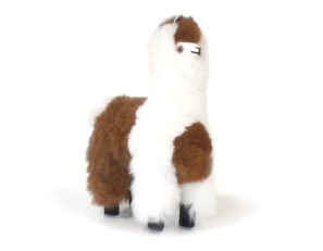 Bílo-hnědá lama (dlouhé chlupy) – hračka z alpaky – malá
