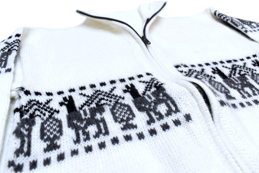 Příjemný svetr na zip s límečkem a kapsami. Vyroben ze směsi vlny z alpaky a akrylového vlákna. Je lehký a přitom velice dobře hřeje. Vlna z alpaky je hypoalergenní, neškrábe ani nekouše a tak je svetřík příjemný na nošení. Ideální na výlet do přírody, ale parádu udělá i ve městě.