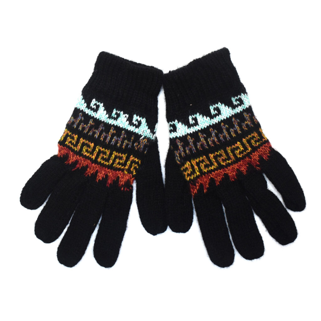 Teplé jednovrstvé rukavice s barevnými vzory. Univerzální velikost.