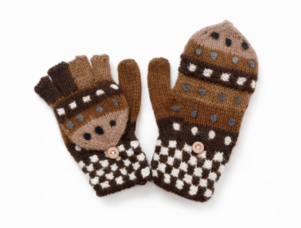 Ručně pletené hnědé rukavice