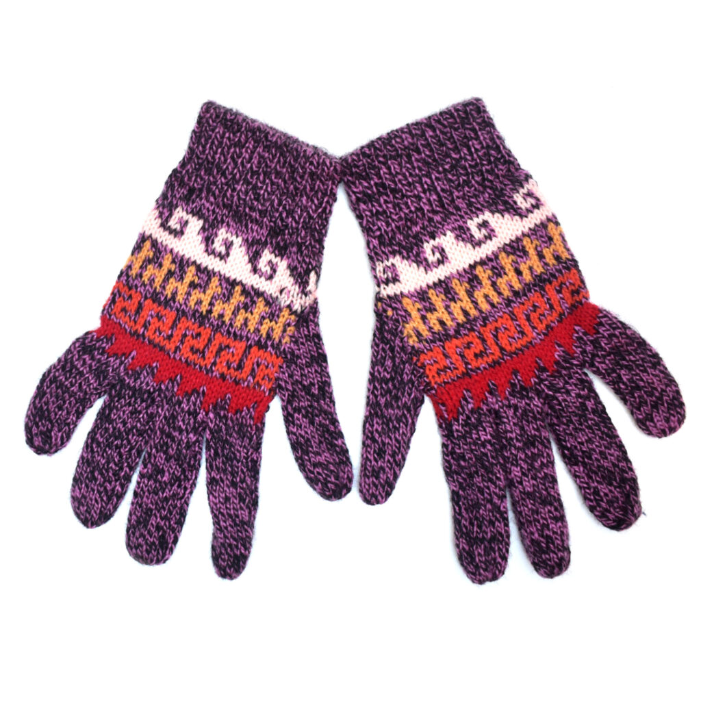 Teplé jednovrstvé rukavice s barevnými vzory. Velikost S-M.
