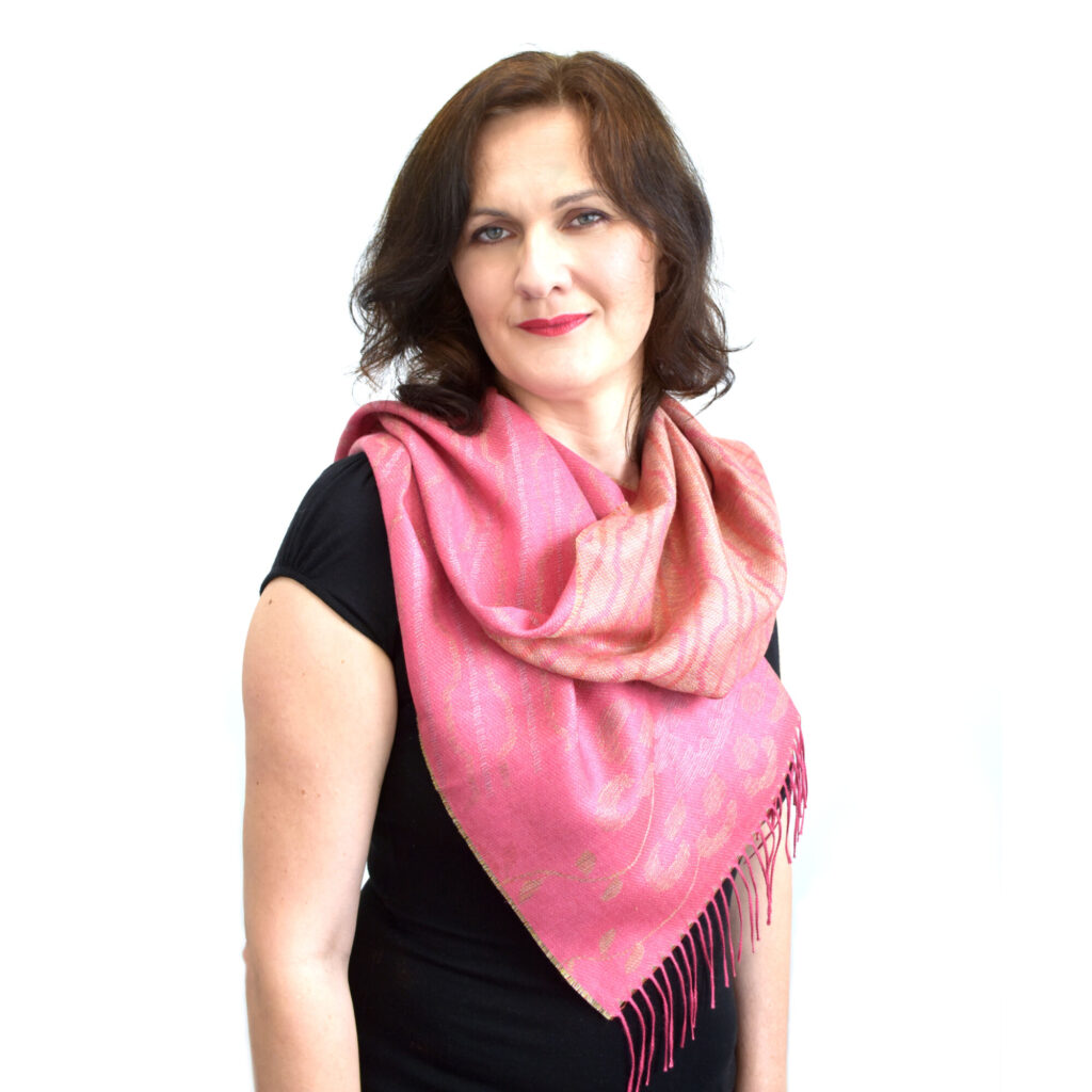 Velmi jemný růžový šál z baby alpaky a hedvábí vysoce kvalitní peruánské značky Sol Alpaca. Baby alpaka je první střih vlny mladých lam, což dodává šále velkou hebkost a také hřejivost.