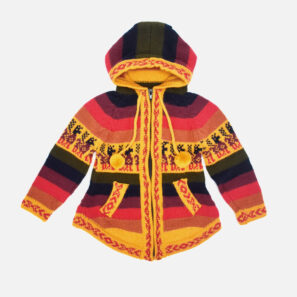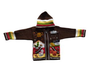 Dětský svetr plný barev a zvířátek vyráběný peruánskou tradiční technikou…