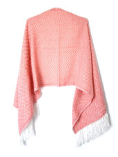 Teplý šál s vyšším procentem vlny z alpaky v elegantní růžové barvě. Je velmi jemný a příjemný na nošení.